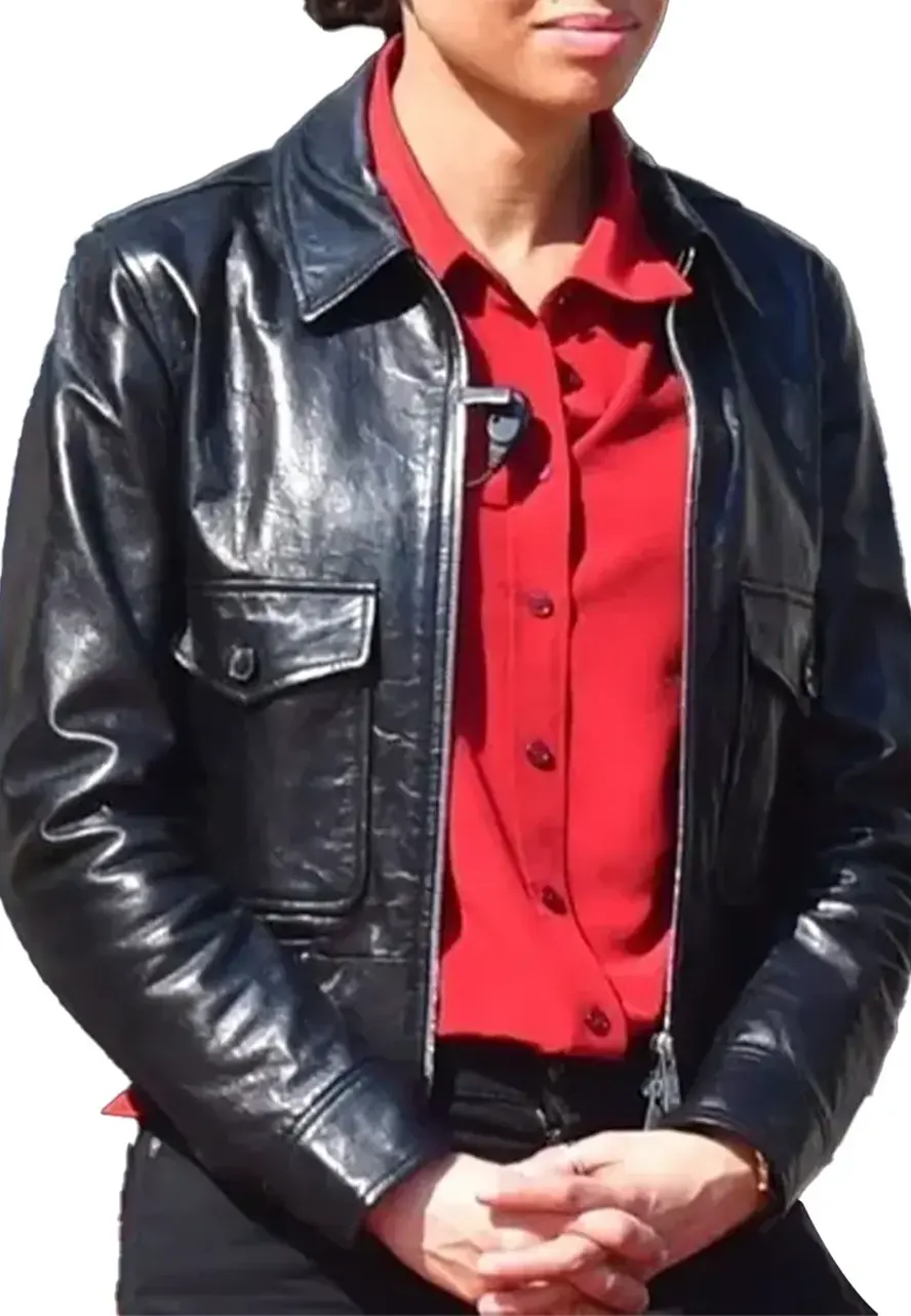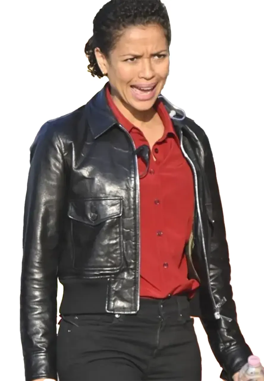 Abby Film Lift 2024 Gugu Mbatha-Raw Black Leather Jacket