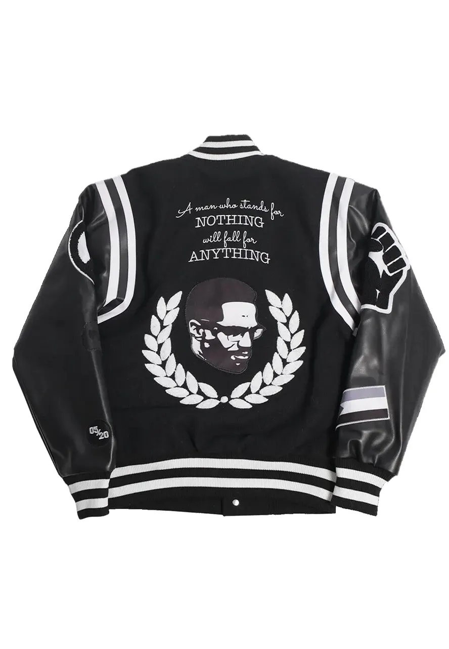 All Stars Malcolm X Varsity Black Full-Snap Wool/Leather Jacket