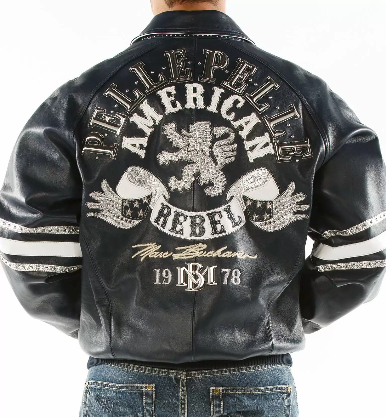American Rebel Navy Blue Pelle Pelle Studded Jacket