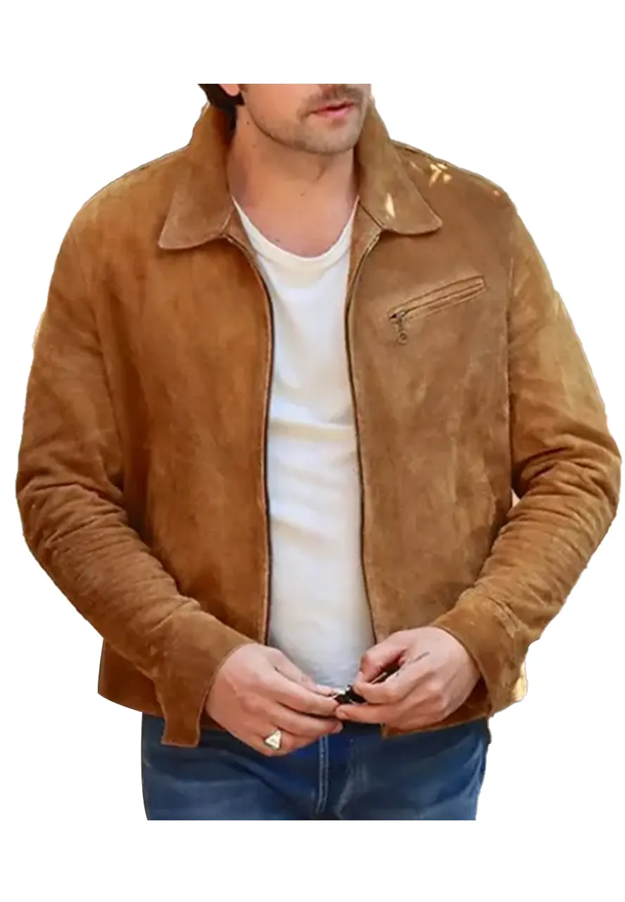 Shop Brandon Sklenar It Ends With Us 2024 Atlas Corrigan Brown Suede Leather Jacket
