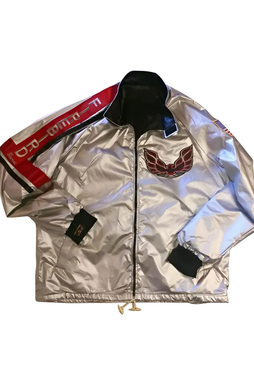 Burt Reynolds firebird jacket was worn in the film Hooper as protagonist Sonny hooper. The design of this jacket is appealing. It is made using satin of high quality. The inside lining is made from soft viscose, which keeps you warm and comfortable. The Firebird jacket comes with front ykk branded zip closing and a chic snap-tab collar. Sleeves that are long are made from rib knitted cuffs. Burt Reynolds silver jacket contains two pockets on the sides of the waist, where you can place items. The design of Firebird across the chest is attractive to carry. The silver hue of this jacket makes it appealing.