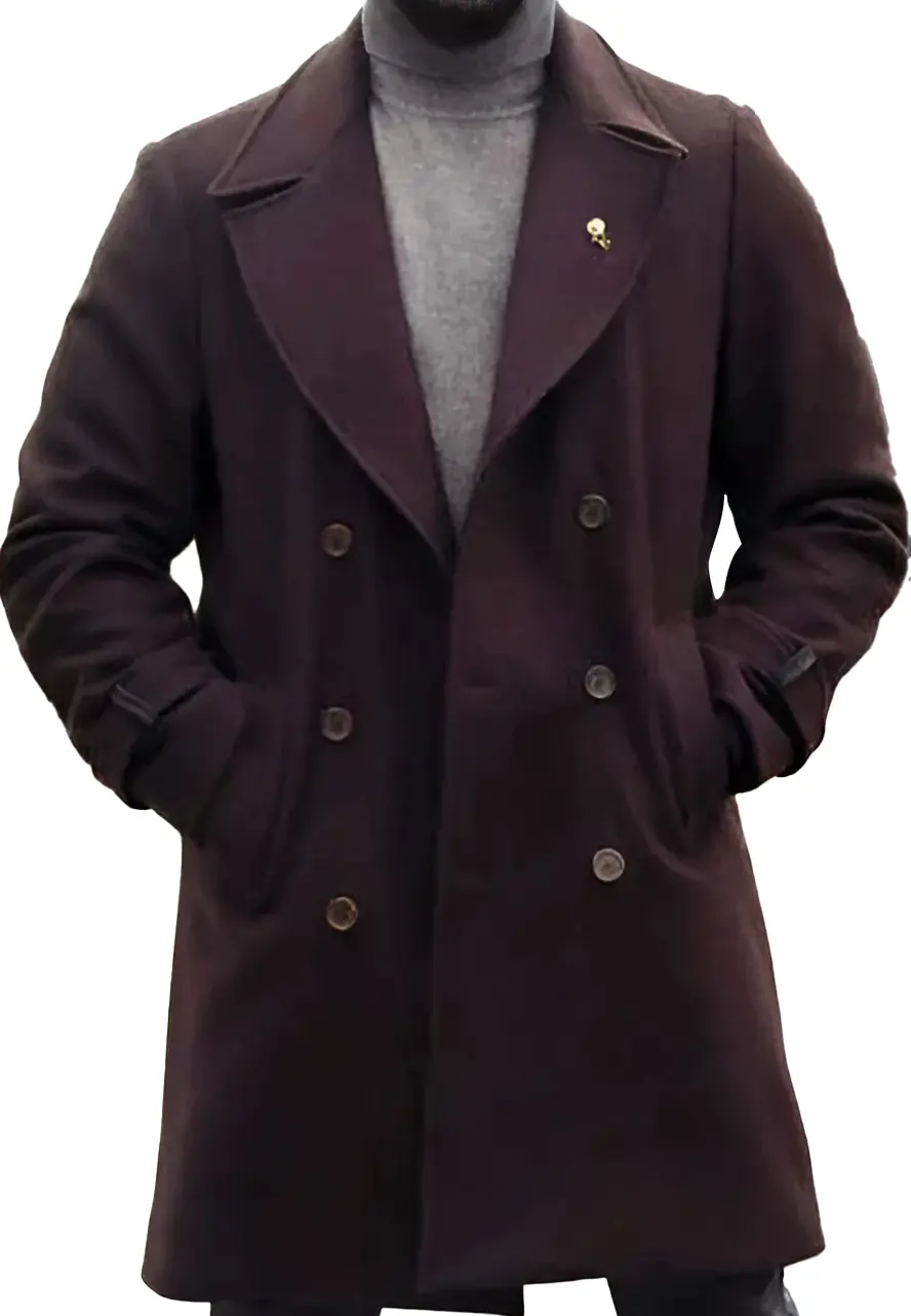 Upgrade your wardrobe with the Cross Aldis Hodge Double Breasted Coat. Made from premium wool, this coat features a soft viscose lining for comfort. It includes two side pockets and two inner pockets for practicality, along with full-length sleeves for added warmth. The stylish lapel collar and open hem cuffs enhance its classic look, while the elegant double-breasted closure and rich maroon color make it a standout piece for any occasion.