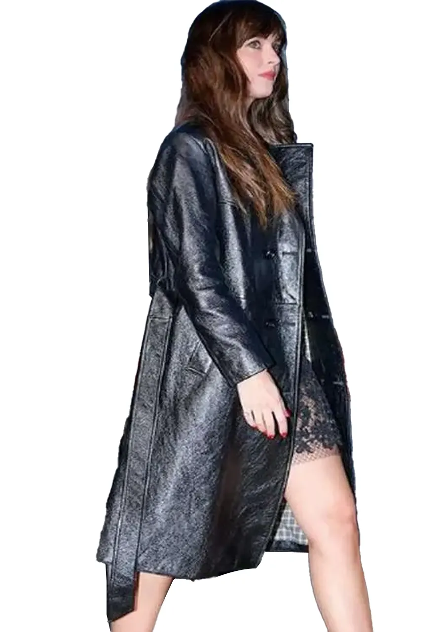 Dakota Johnson Gucci Cruise 2024 Leather Trench Coat
