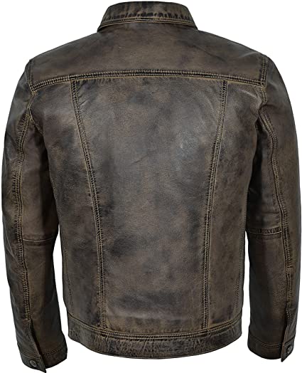 To own quite an original or stylish appearance, you must go for the Dirty Brown Leather Trucker Jacket which is a smart choice for all fashion seekers. Its premium quality real leather makes it warm and luxuriant and its soft viscose inner will comfy you for how long you wear it. The distressed brown color will look awesome on you. The Dirty Brown Men’s Leather Trucker Jacket has featured shirt style collar, snap tab buttoned closure, chest flapped and side waist pockets, and buttoned cuffs. Be a fashion inspiration for your pals and everyone around you just by wearing the Dirty Brown Men’s Leather Trucker Jacket.