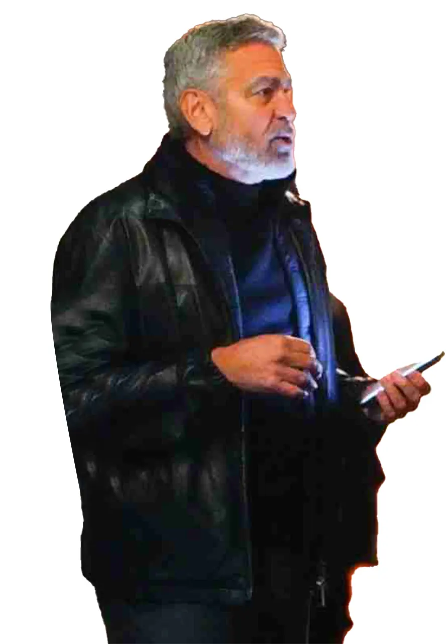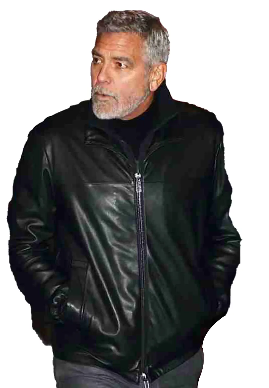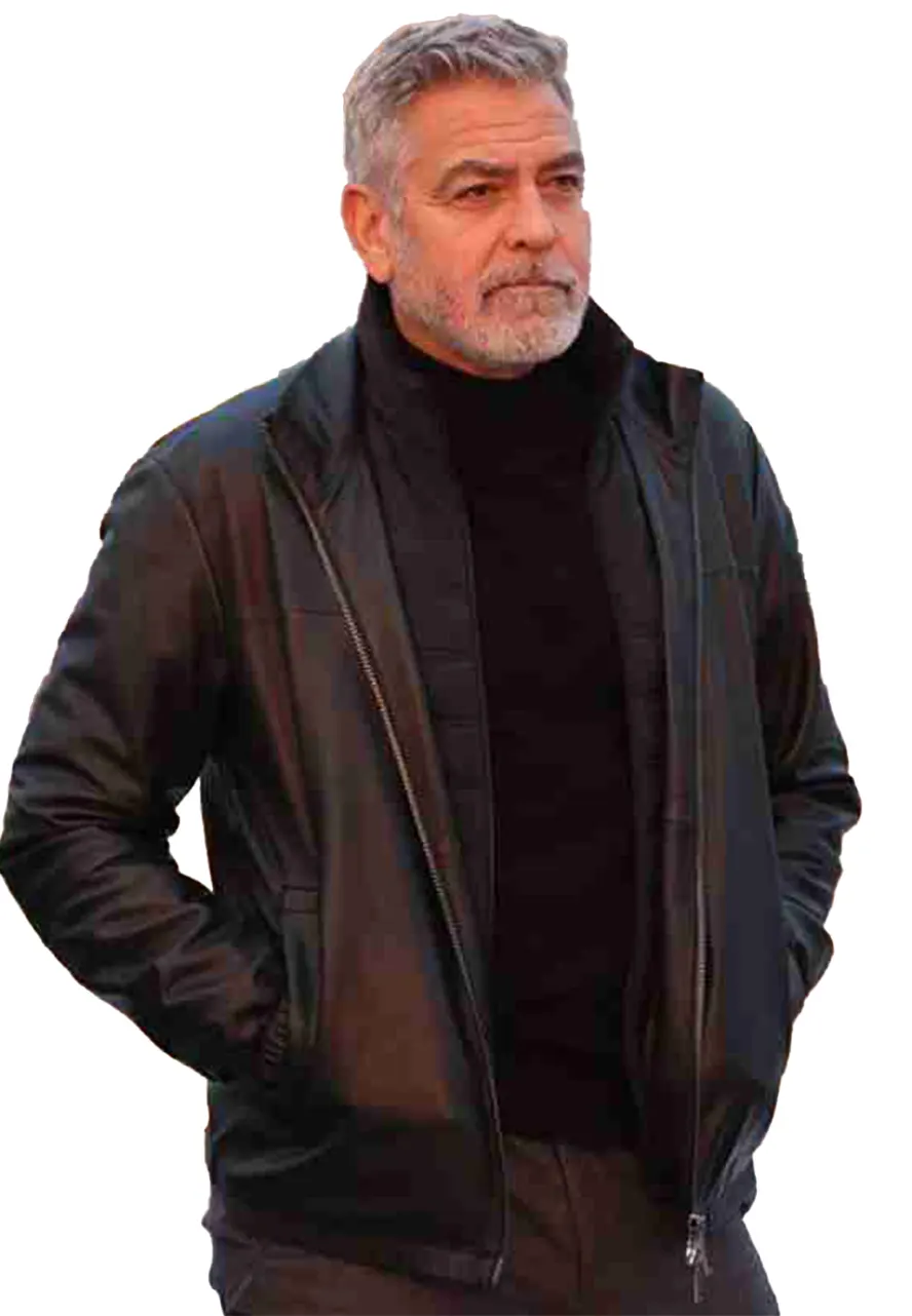 George Clooney Wolfs 2024 Movie Black Real Leather Jacket