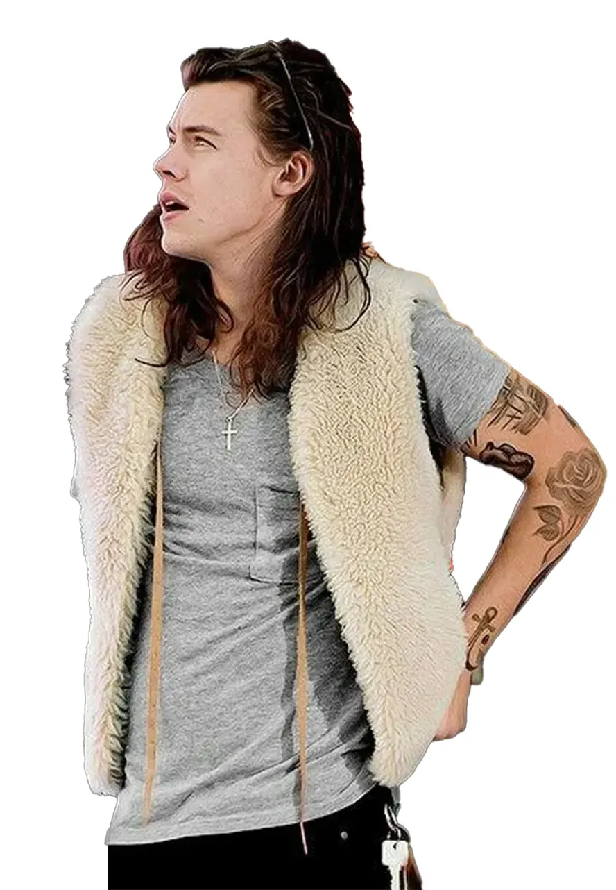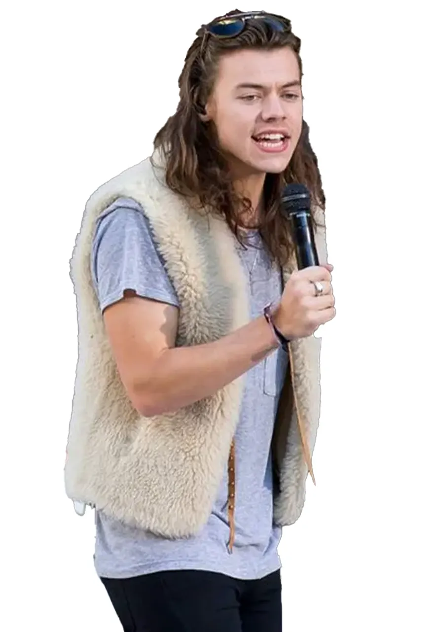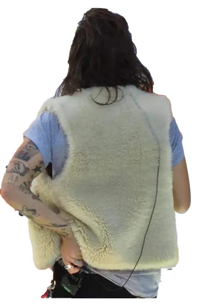 English singer Harry Styles Los Angeles Off White Shearling Vest