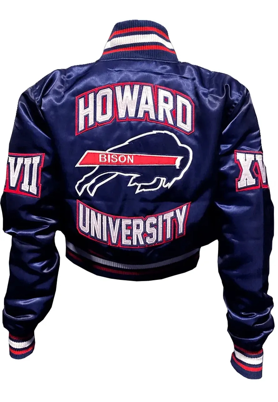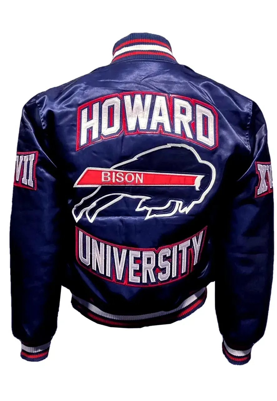 Howard University Bison Satin Navy Blue Bomber Jacket