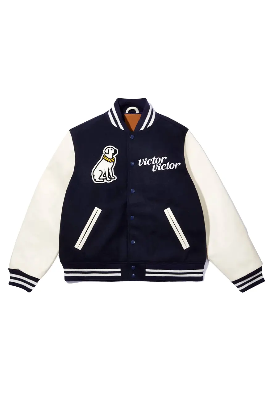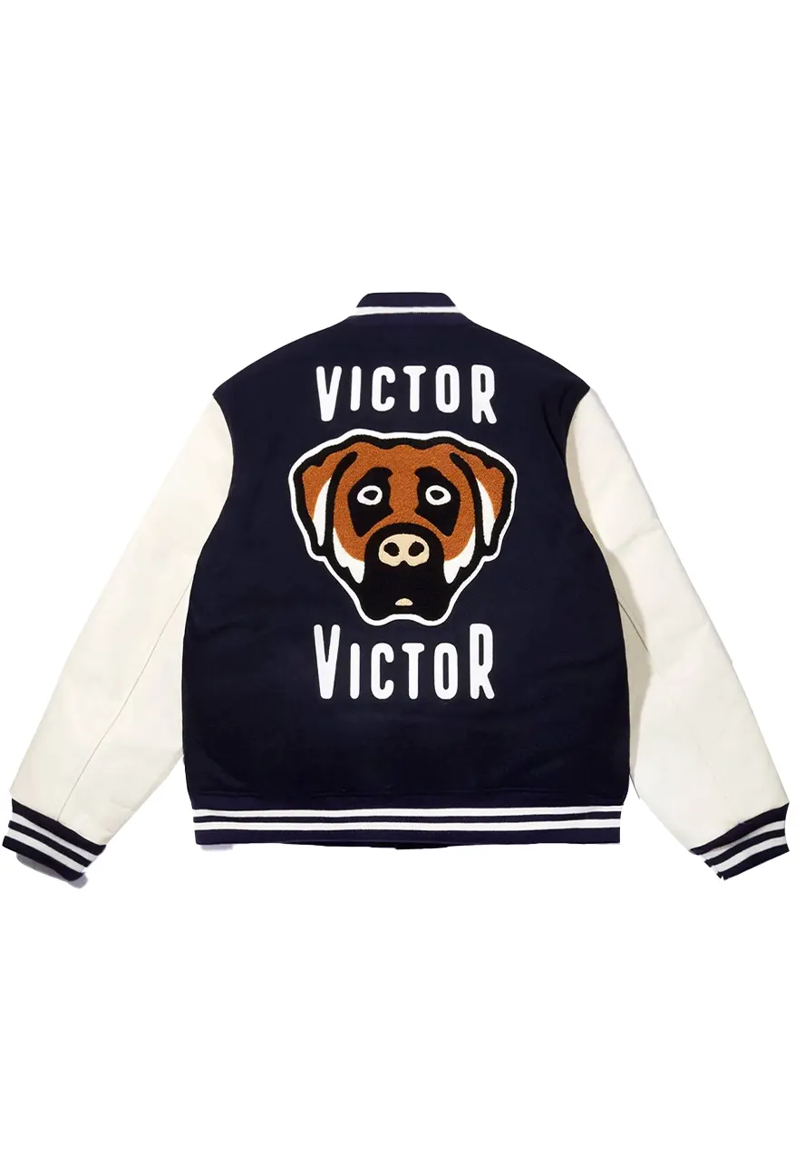 Human Made Victor Victor Black Varsity Wool/Leather Full-Snap Jacket