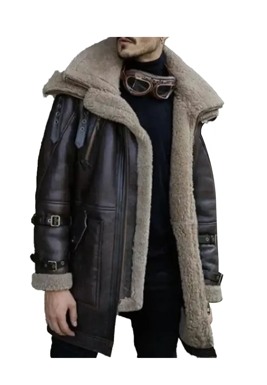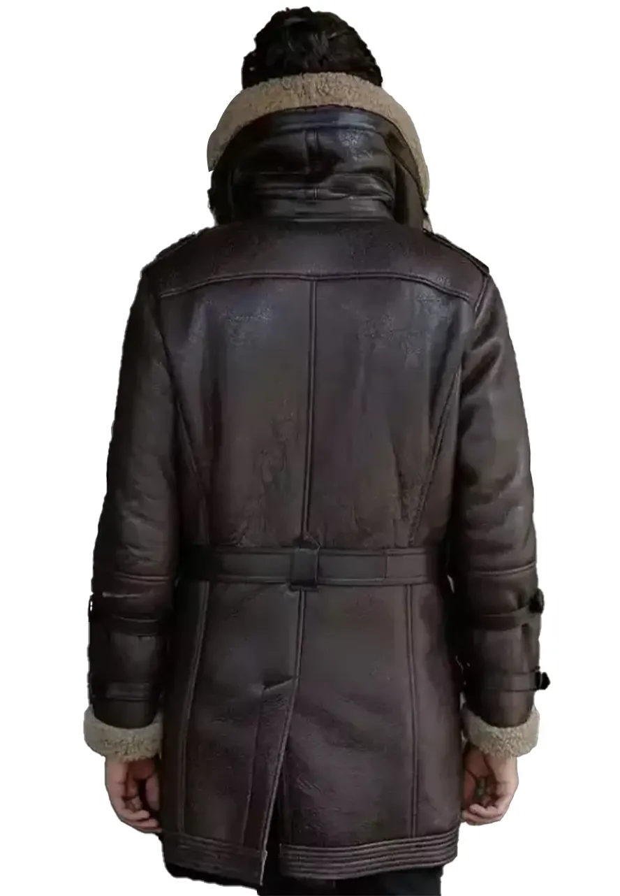 Jordan Double Collar Heavy Weight Brown Shearling Leather Coat