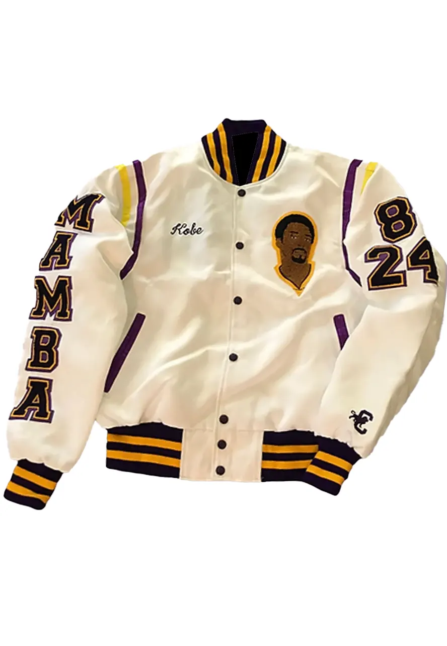 Mamba Legend Never Die Kobe Bryant Letterman Varsity White Jacket