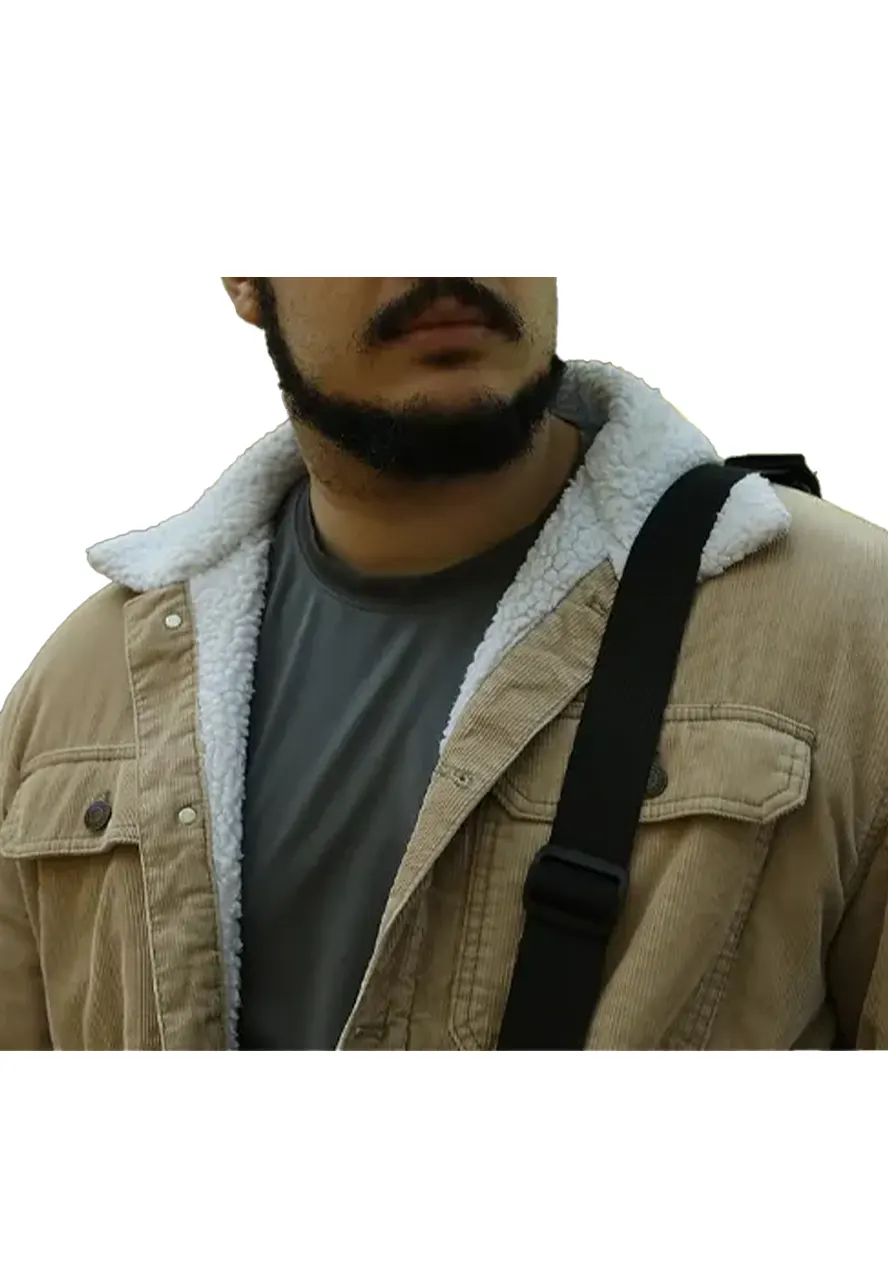 Adrian Espinal The Night of the Harvest 2024 Horror Movie Logan Beige Corduroy Jacket