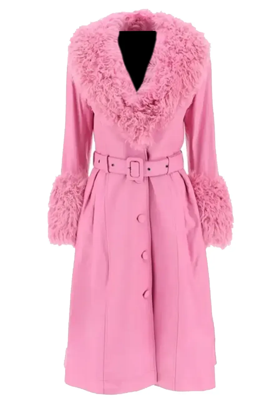 New Year’s Nashville Big Bash Elle King Pink Leather Shearling Trench Coat