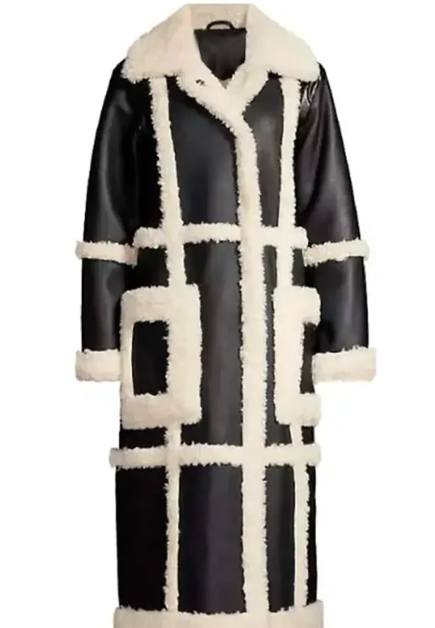 Natasha Behnam The Girls On The Bus 2024 Lola Rahaii Shearling Black Leather Coat