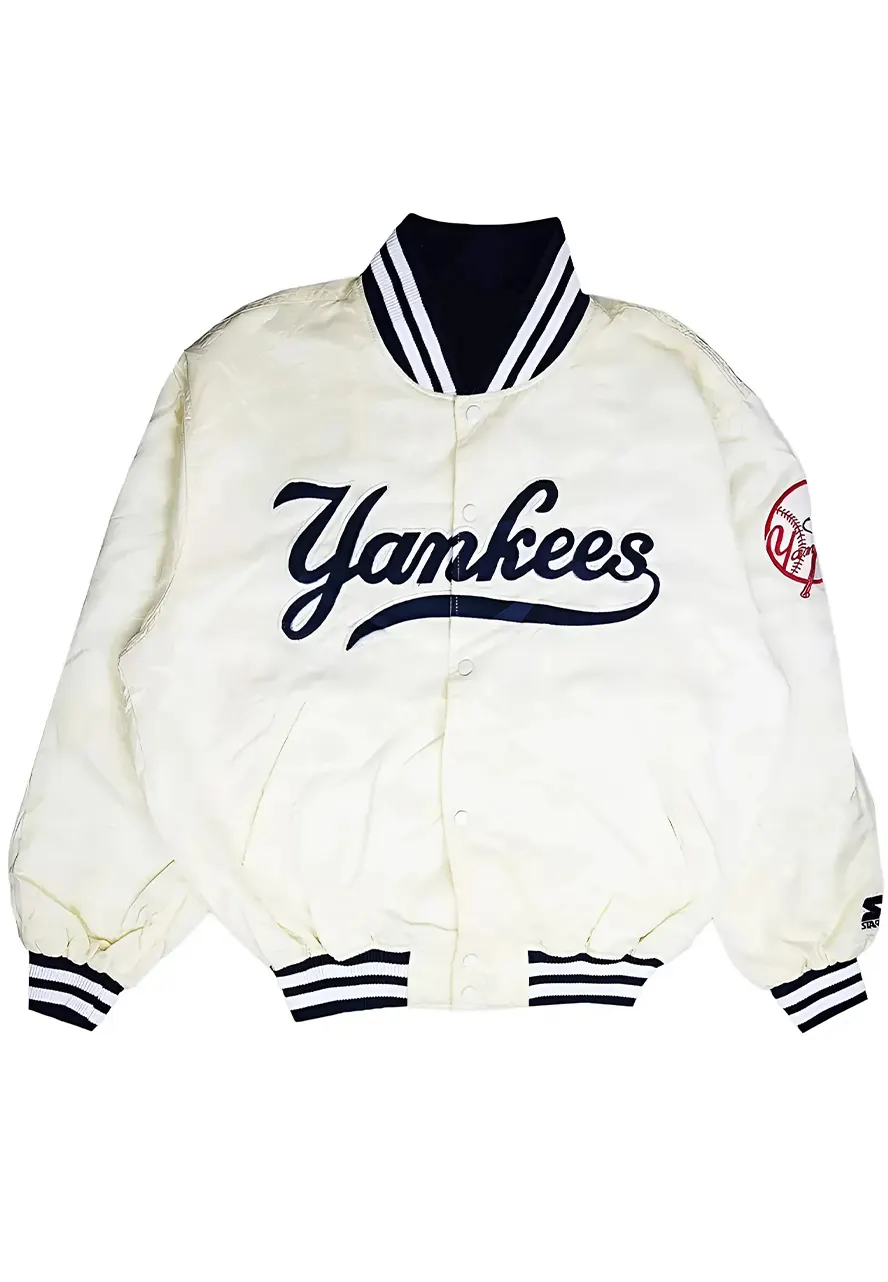 Step up to the plate with the New York Yankees 90s White Satin jacket, inspired by an iconic American baseball team Shop Now.