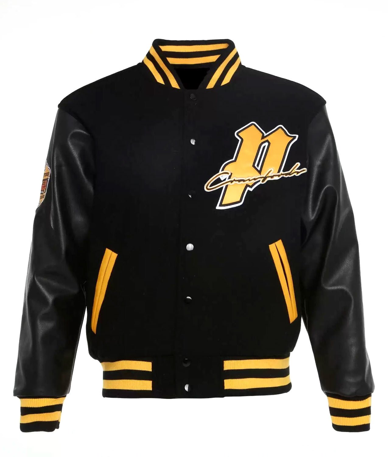 Now create your own sportsman looks and make everyone your style follower just by wearing the National League Champs Pittsburgh Crawfords Black Varsity Jacket. Its premium quality wool and genuine leather fabrication make it highly fashioned and warm. The strong black color will enhance your smartness. The National League Champs Pittsburgh Crawfords Black Varsity Jacket has been designed by using features like rib-knitted stand-up collar, buttoned closure, rib-knitted cuffs and hemline and side waist pockets. The National League Champs Pittsburgh Crawfords Black Varsity Jacket will go great over white tee with tighter jeans, don’t forget to wear sneakers.