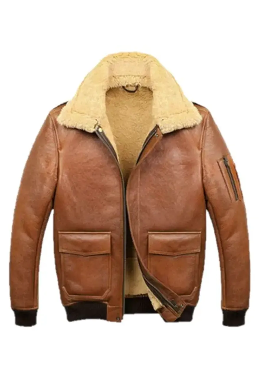 Samuel Tan Brown Shearling Fur SF Bomber Warm Winter Leather Jacket