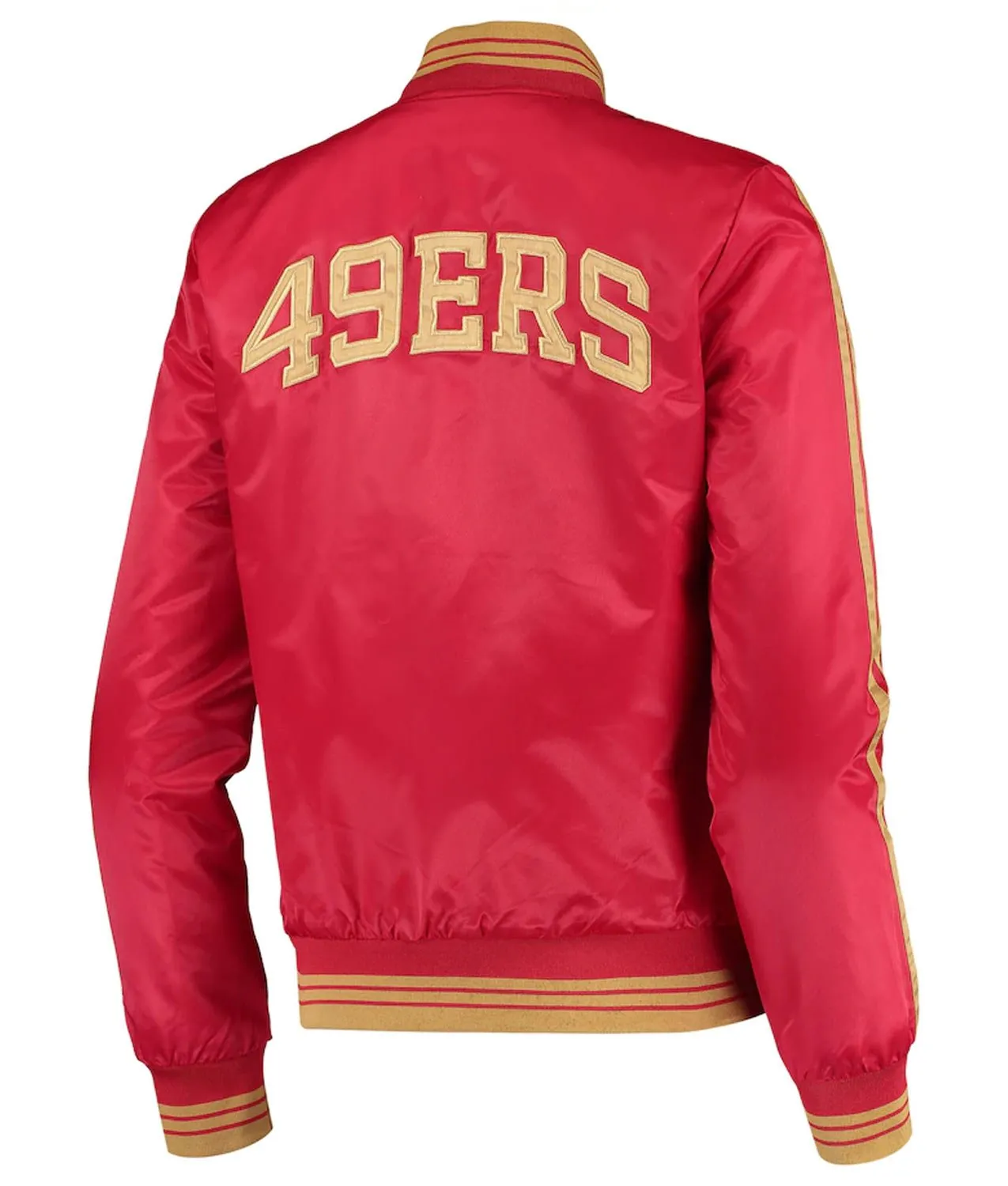 It is time for some of the best casual essentials to upgrade your casual looks and your own highly attractive personality. For that, just you need to shop and wear the Starter Replica San Francisco 49ers Overtime Red Varsity Satin Jacket. Its top-quality satin fabrication makes it warm and ageless and its soft viscose inner will comfy you for how long you wear it. The red color makes it attractive. The Starter Replica San Francisco 49ers Overtime Red Varsity Satin Jacket has been designed by using attributes tailored in a great way by using features like shirt style collar, snap tab buttoned closure, rib-knitted cuffs, and hemline and side waist warmer pockets. The Starter Replica San Francisco 49ers Overtime Red Varsity Satin Jacket will allow you to wear it casually or occasionally to own an adorable personality.