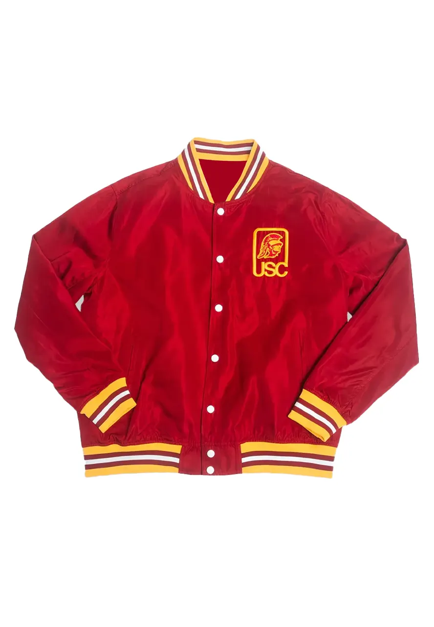 Script USC Trojans Red Logo Full-Snap Satin Jacket