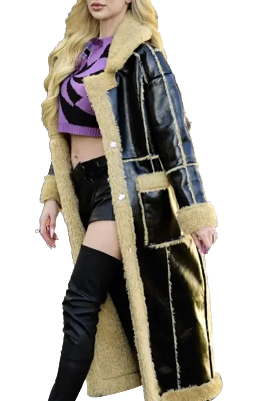 Get Amazing Selling Sunset Christine Quinn Shearling Black Leather Coat