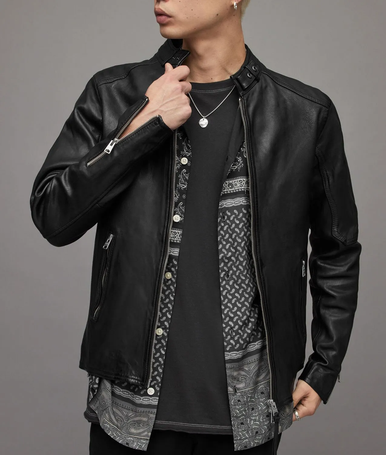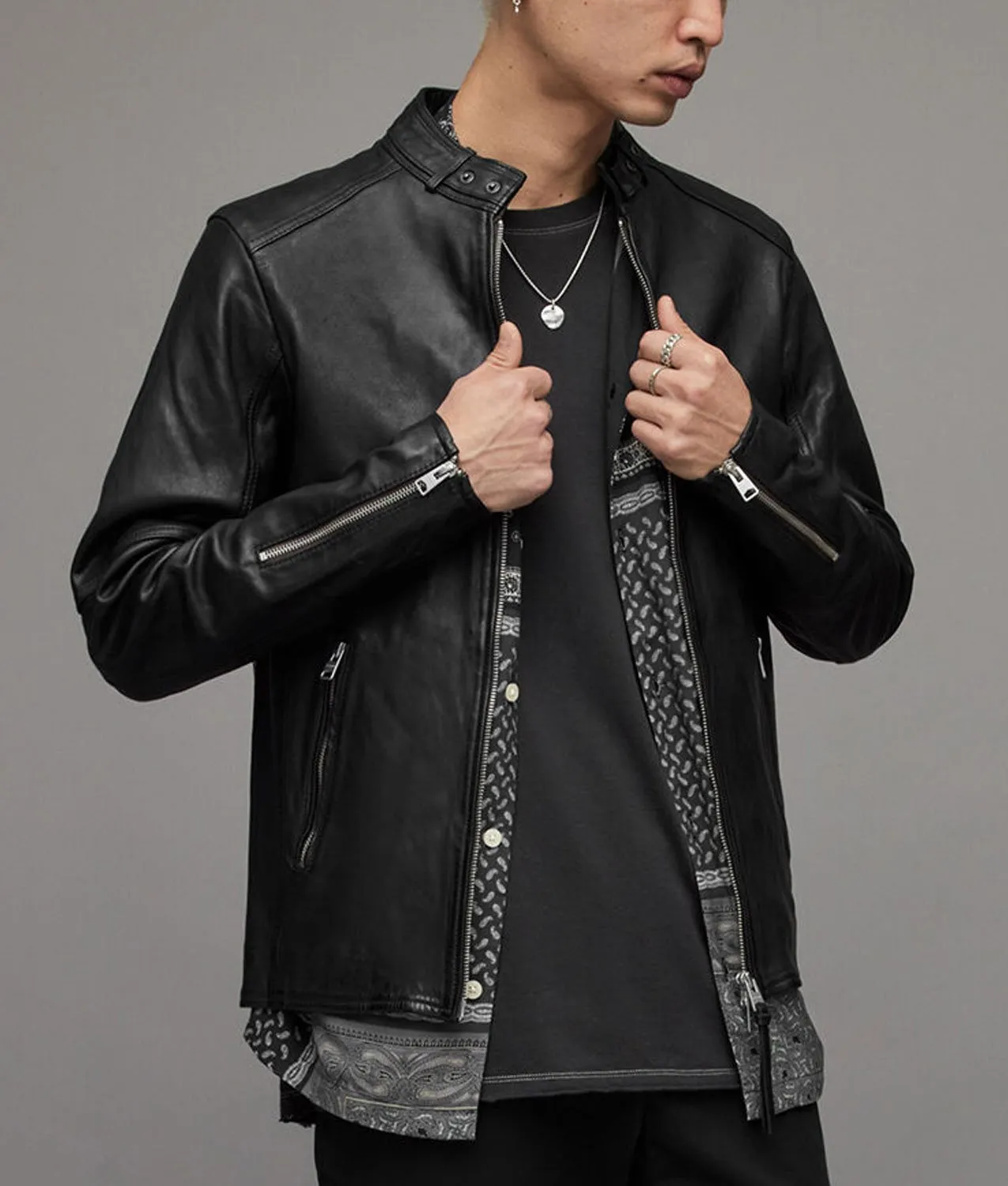It is high time to shop the Cleaning Lady Adan Canto Black Leather Jacket to discover a new style of bold biker looks and enrich your personality with a lot of attraction. Its premium quality genuine leather fabrication makes it warm and luxuriant and its soft viscose inner makes it comfortable to wear. The strong black color will go on every outfit. The Cleaning Lady Arman Morales Black Leather Jacket has featured a stand-up collar, smooth zippered closure, side waist zippered pockets, and zippered cuffs. The Cleaning Lady Arman Morales Black Leather Jacket will get you ready for any party or special event while keeping you in comfort.