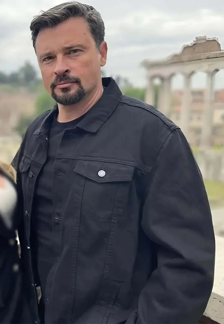 Channel bold sophistication with the Tom Welling Mafia Wars Black Jacket. Crafted from premium cotton fabric, this jacket combines a sleek, shirt-style collar with a durable buttoned closure for a timeless look. The versatile black finish pairs perfectly with any outfit, while four spacious front pockets and two inner pockets keep essentials close at hand. Lined with soft viscose, this full-length sleeved jacket brings comfort and style together seamlessly an essential piece for those who appreciate understated elegance.