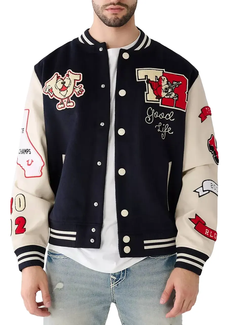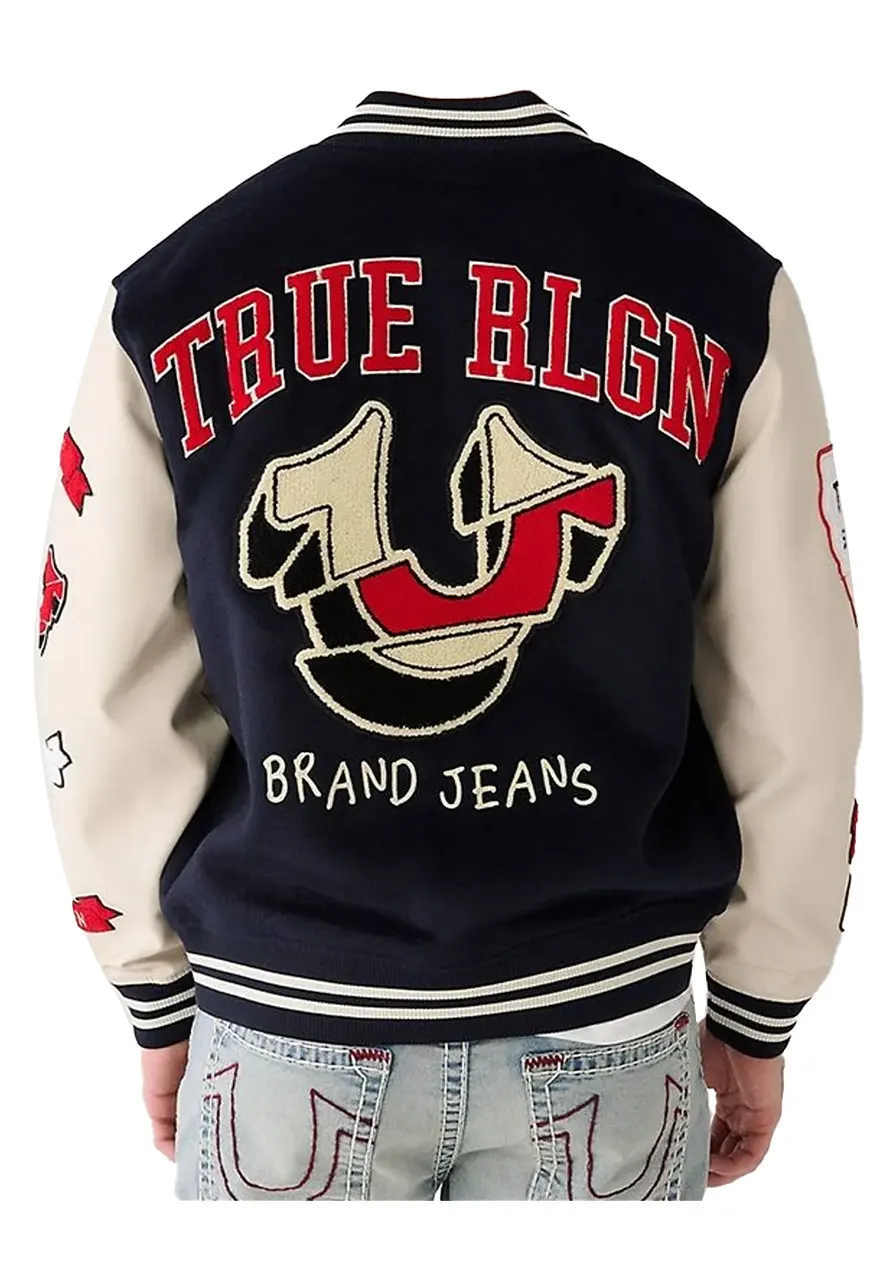 Spliced True Religion U Brand Jeans Black and White Letterman Jacket