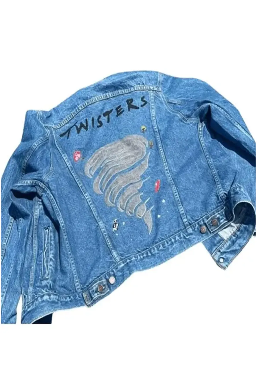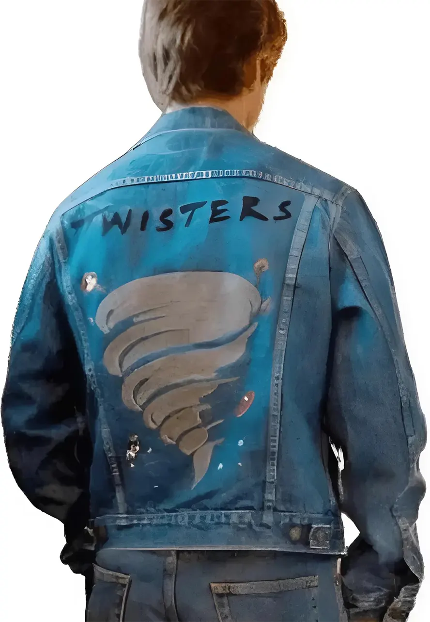 Glen Powell Movie Twisters Embroidered Blue Denim Jacket