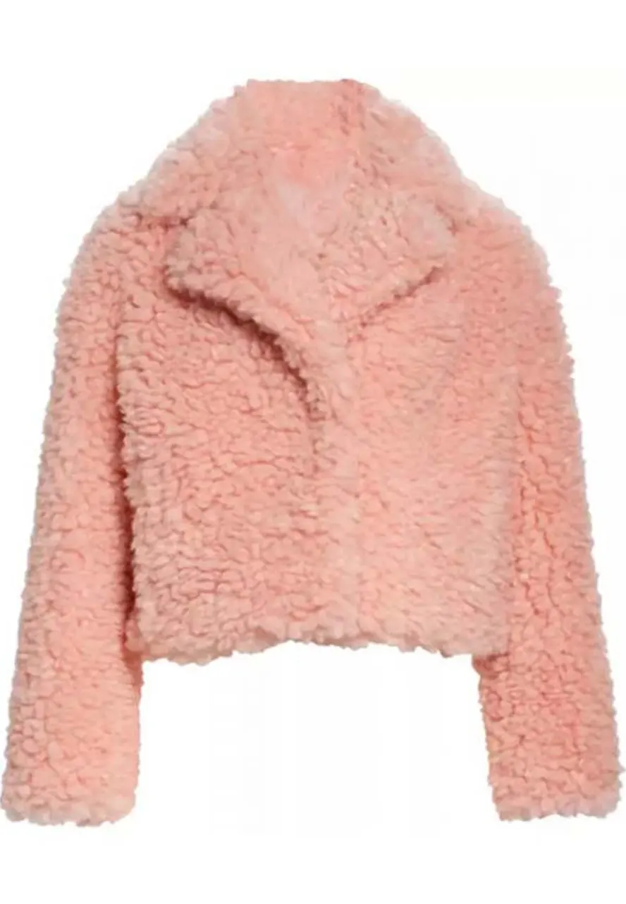 Enid Sinclair Tv Series Wednesday 2022 Emma Myers Pink Faux Fur Jacket