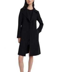 This coat is prepared by wool blend with inner viscose lining and stylish belted closure with wide notch lapel style collar and open hem cuffs.